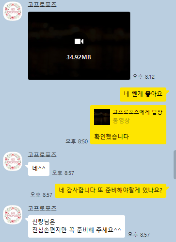 제가 원하는대로 영상 수정도 계속 해주셨고, 프로포즈는 성공적으로 끝났습니다.