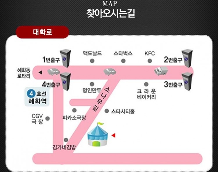 김대범소극장 - 당신이 주인공 이 홍대에 이어서 대학로점도 오픈하였습니다^^ 홍대는 당신이주인공 오리지널 버전 대학로는 당신이주인공 코믹공포 버전입니다. 조금은 무섭지만 무서운걸 꺽어서 코믹하게 바꾼 연극입니다. 당신이주인공 공포버전과 함께 시원한 프로포즈로 속을 뻥~ 뚫어보세요~ 대학로점 공연안내 입니다.(프로포즈 가능하신 타임입니다.) 평일 오후 4시,6시,8시 토요일 및 공휴일 오후 2시,4시,6시,8시 일요일 오후 2시,4시,6시 12월24일 2시,4시,6시,8시,10시 12월25일 12시,2시,4시,6시,8시 12월31일 2시,4시,6시,8시,10시30분 입니다.^^ 홍대점과 대학로점 둘다 공연시간은 같으니까 소극장 프로포즈 문의는 언제든지 02-3144-1063 또는 직통전화 010-8859-1063 로 연락주세요~ 최고로 감동적인 프로포즈를 위해 최선을 다해 준비하겠습니다!!