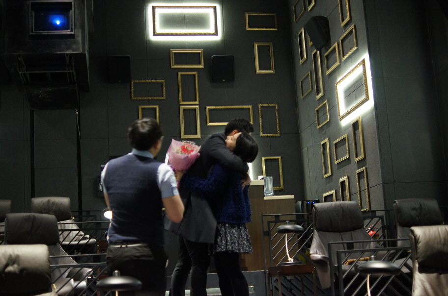 무튼 일단 여자친구 속이는 것부터 어떻게 하는지 도와주시고 ㅋㅋ 저는 진짜 그냥 영화보러가잔 얘기만 하면 알아서 다해주셨네요 ㅎㅎ 메가박스에서 이름 대고 티켓달라니까 예매번호있어야된다는 직원때문에 ㅎㄷㄷㄷㄷㄷㄷ 뭐지.... 하다가 ㅋㅋ 직원이..아!!!!! 하면서 주는데 휴.... 큰일날뻔했습니다 ㅋㅋㅋ 스위트 룸이라 여자친구도 너무 좋아했어요 ㅎㅎ 우오ㅏ 여기좋다~ 하면서 여기저기 둘러보며 정신없게 구는 바람에 앞에 영상이나오는데 집중을 안하지 뭡니까 ㅋㅋ 근데 노래가 나오면서 자기사진 나오니까 그대로 멈춰서 글썽이는데 성공이다 싶었죠 ㅎㅎ 영상 끝나고 사회자분과 사진ㅛ 기사님께서 올라오시는데 ㅎㅎ 부끄럼 많은 저를 정말로 잘 다뤄(?) 주셨습니다 ㅎㅎ 성함이라도 알고싶네요 ㅠㅠ알려주세요 ㅋㅋ 여ㅛ 기 돈 300만원 들인거라며 ~ 군대 후임이고 오늘을 위해 진짜 날밤새며 준비하셨다는둥 ㅎㅎ 제어깨를 펴주시는데 기분이 좋았습니다 ㅎㅎ 덕분에 긴장도 어느정도 풀렸구요 ㅎㅎ