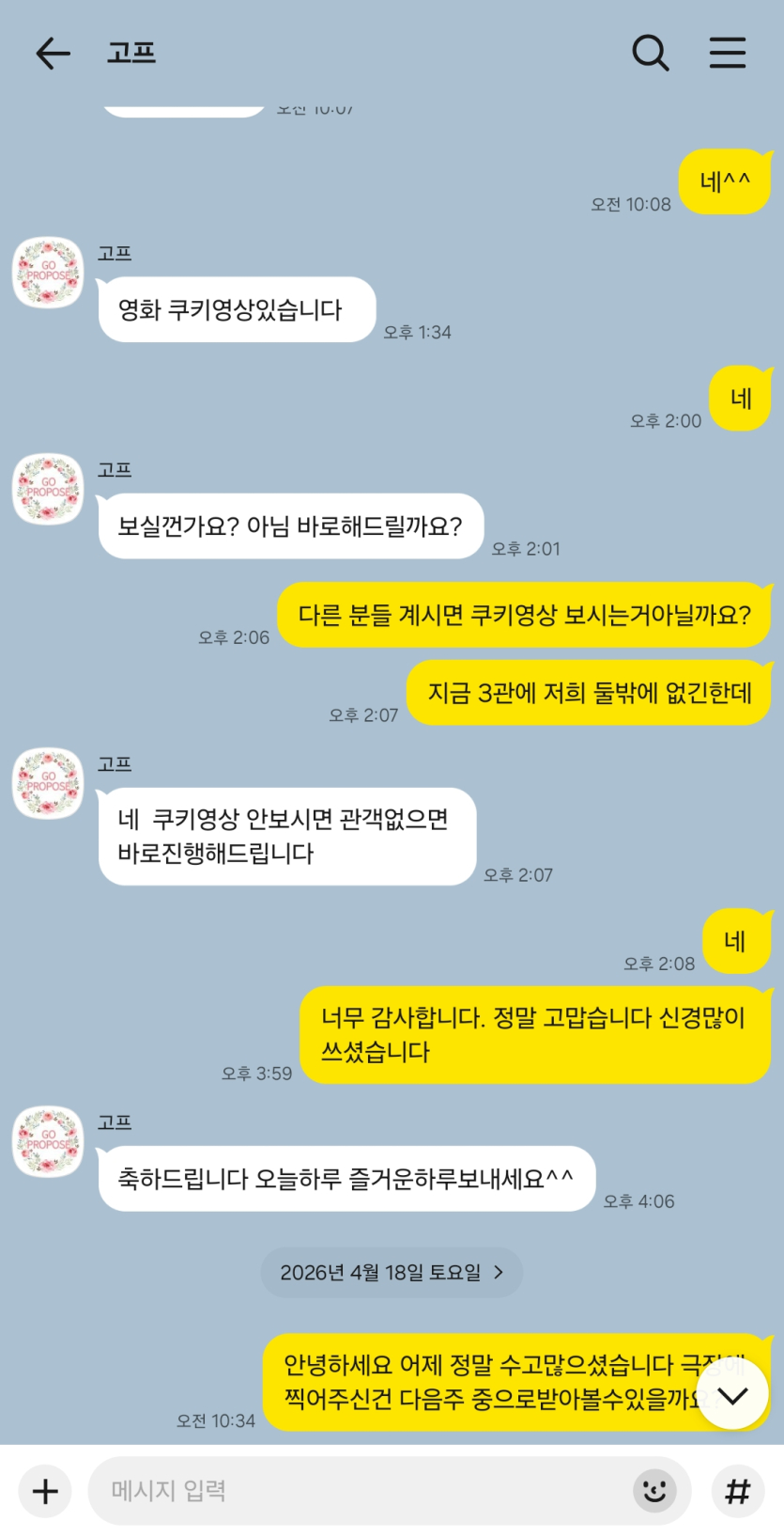 정말 잘했다고생각합니다 앞으로도 많은 커플들한테 사랑받은 고프로포즈가
